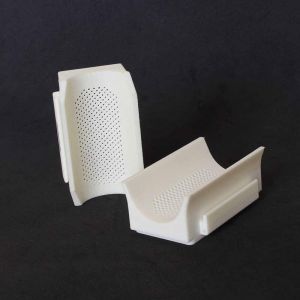 Para esta aplicación tan concreta se ha elegido la tecnología de impresión 3D SLS en poliamida 12. Esta tecnología tiene la precisión suficiente para sacar correctamente los agujeros y además tiene la certificación de contacto con alimentos una vez se limpian bien las piezas.